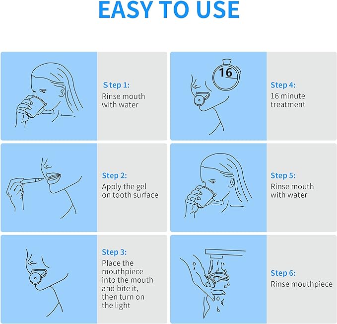 - ✦QUICK AND PAINLESS - Use once a day for 15-20 minutes to whiten all type of stains from coffee, wine, soda, smoking, and more with light-activated acceleration technology. Unique formula which is same enamel-safe whitening agent used by dentists guarantees that your teeth will experience maximum whitening effect without sensitivity or pain