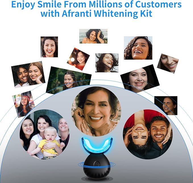 Afranti Home Use Wireless Teeth Whitening Kit With 16-Point LED Blue Lights Accelerator, Natural Whitening Effective Stain Removal Include 4 Teeth Whitening Gel Pens Complimentary Color Card