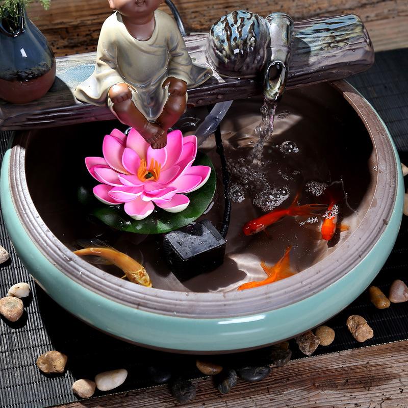 Ceramic Flowing Water Ornaments Fish Tank Living Room Office Humidifier