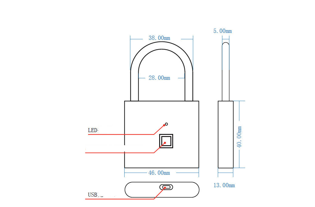 4. If you forget to charge, the battery runs out and the padlock will remain closed to keep your property safe. At this time, charge the padlock (support mobile power / charging treasure fast charge), you can immediately unlock by fingerprint.